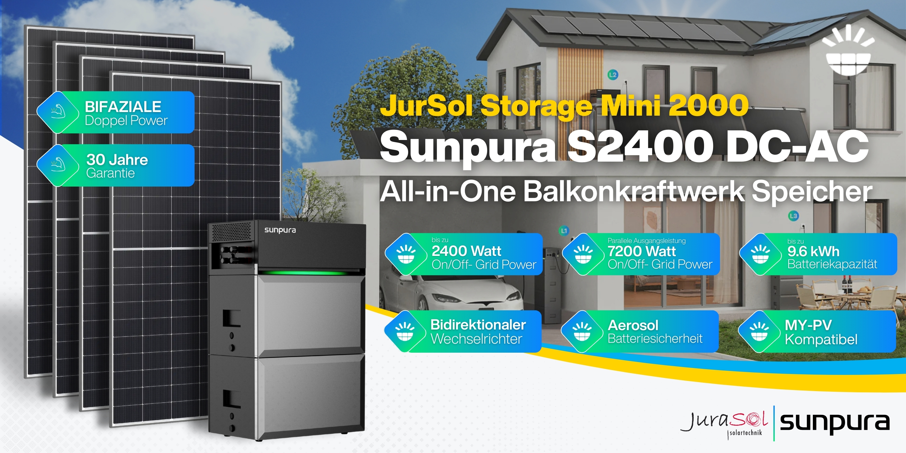 JurSol Storage - Für alle die nicht genug vom Balkonstrom bekommen können. Einfache Lösung zum Speichern von Solarstrom für die Verwendung in der Nacht bzw. in Spitzenzeiten.