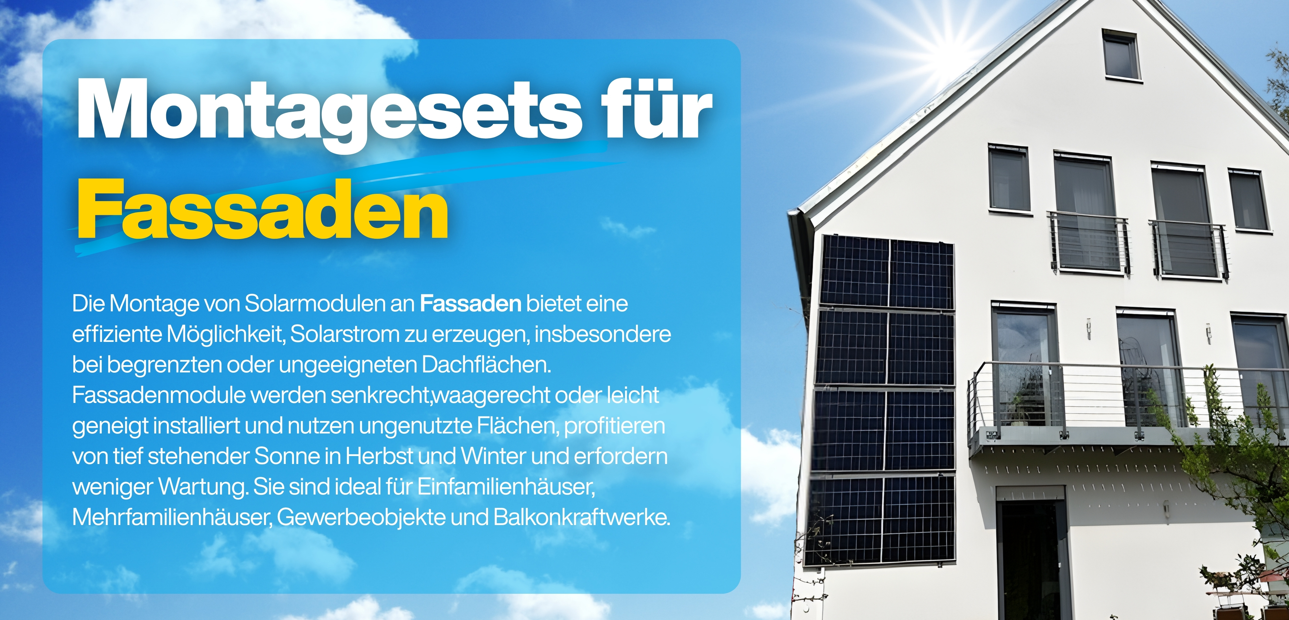 Die Montage von Solarmodulen an der Fassade ist eine intelligente und platzsparende Lösung, um zusätzliche Flächen für die Stromerzeugung zu nutzen. Gerade dort, wo Dachflächen begrenzt, verschattet oder baulich nicht geeignet sind, bietet die Fassadenmontage eine effiziente Alternative. Mit modernen Montagesystemen lassen sich Photovoltaikmodule sicher, stabil und optisch ansprechend direkt an der Hauswand installieren.