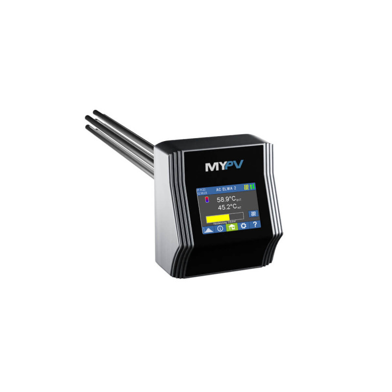 Mit der AC ELWA 2 von my-PV nutzen Sie überschüssige Energie aus Ihrer Photovoltaikanlage direkt zur Warmwasserbereitung. Die Leistung wird stufenlos geregelt, sodass möglichst wenig Strom ins Netz eingespeist wird und Ihr Eigenverbrauch spürbar steigt.